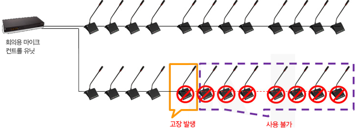 - 일반형 마이크의 단점은 1개의 마이크가 고장 나면 고장 마이크 이후는 사용 할 수가 없습니다.